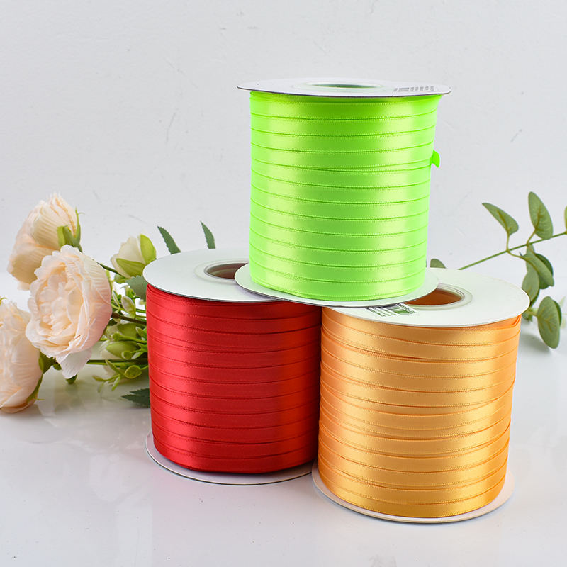 Cheap Ribbon Factory Stock 100% Polyester 6mm Thin Double Sided Satin Ribbon Tape 300 Yards Roll High Tenacity