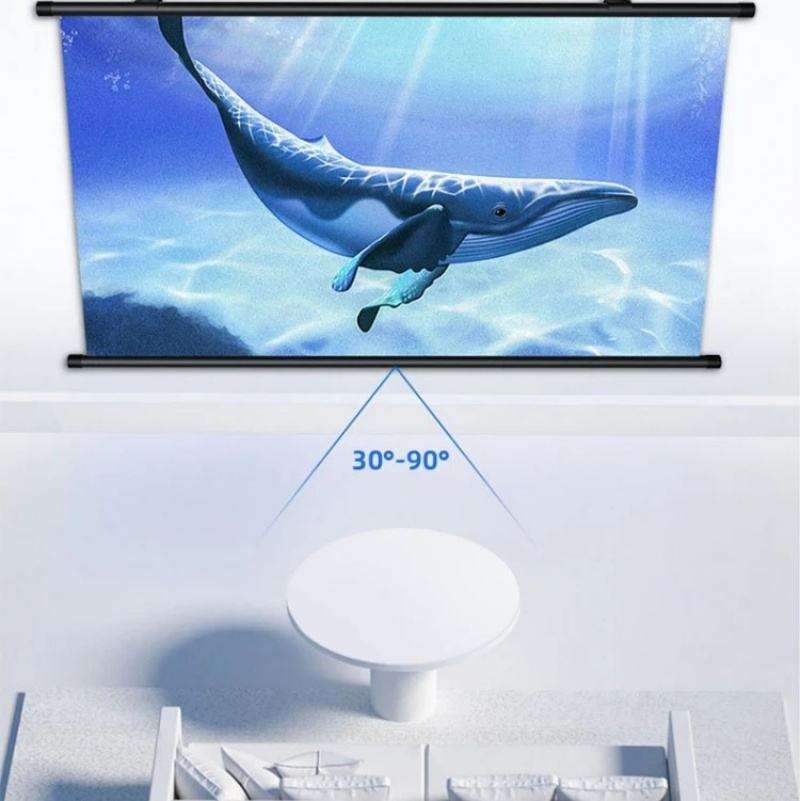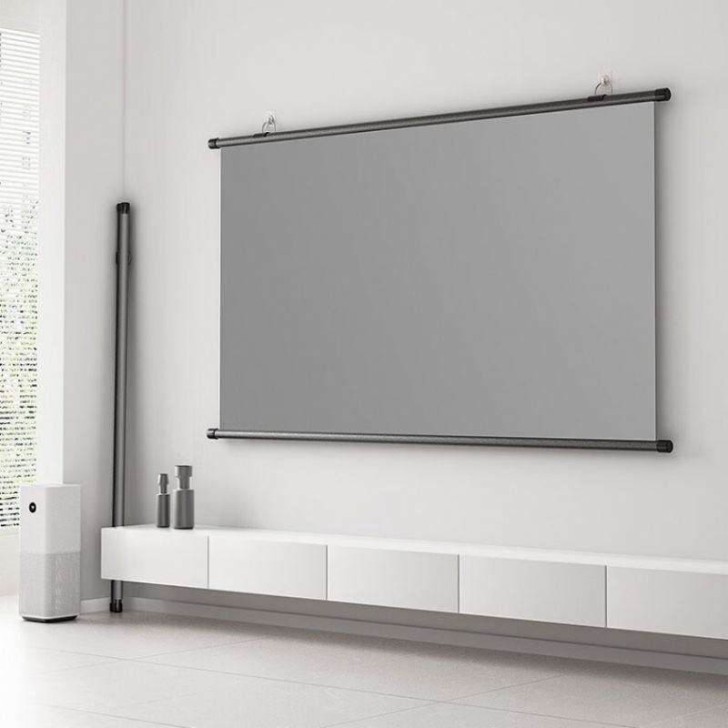 Écran de projection vidéo portable bon marché, déroulable, 60, 80, 100, 120 pouces, 16:9, pour projection de films, à suspendre au mur, gris, matériau ALR