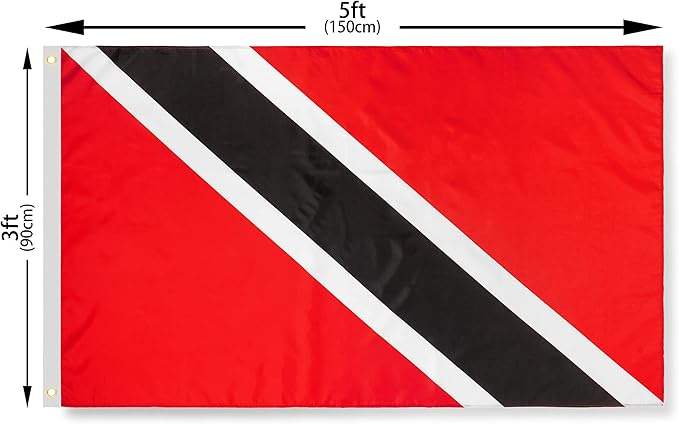 Drapeau national de Trinité-et-Tobago 3x5 pieds en polyester 100% avec deux œillets, écologique, pour poteau de drapeau – Stock à prix réduit