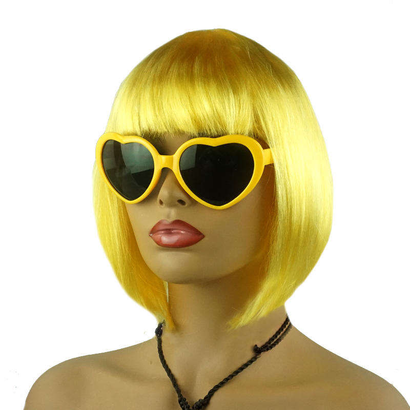 Perruque Courte Droite Violette Pas Chère avec Lunettes de Soleil, Perruques Synthétiques Amusantes pour Halloween, Accessoires de Fête Colorés, Toupet BOB