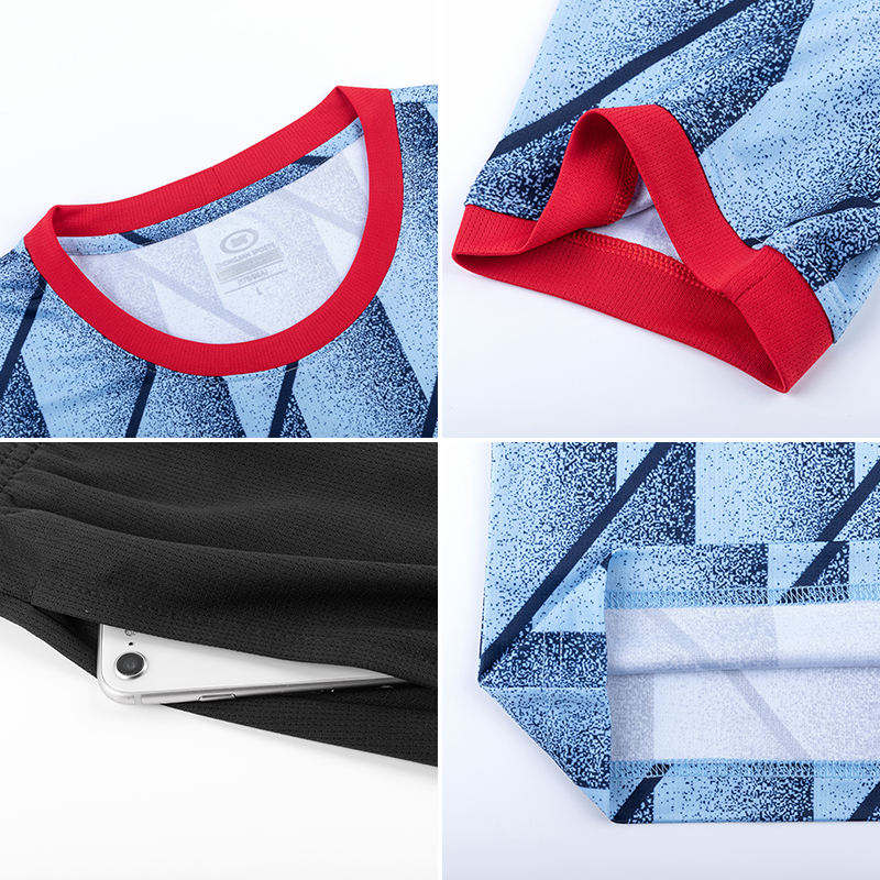 Ensemble de vêtements de sport de football pas cher, ensemble uniforme à séchage rapide, design personnalisé, ensemble de maillot de football bleu et blanc