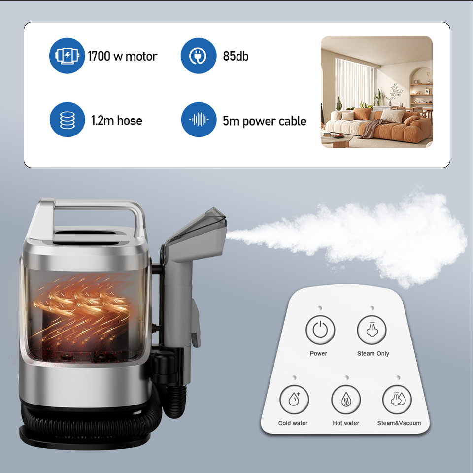 Nettoyeur de tapis à vapeur économique 1700W, aspirateur eau et poussière haute puissance avec réservoir d'eau de grande capacité 1,8L, nettoyeur de taches pour canapés et rideaux
