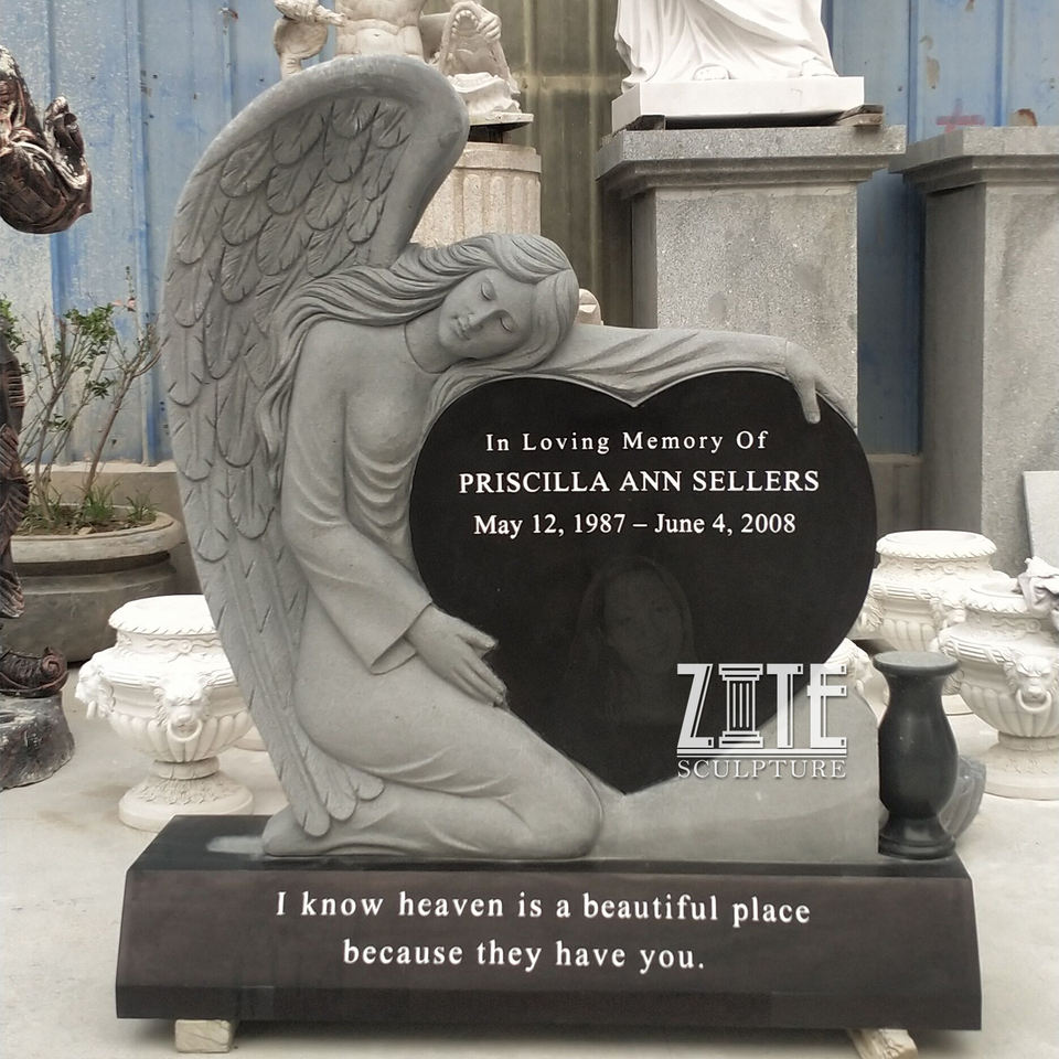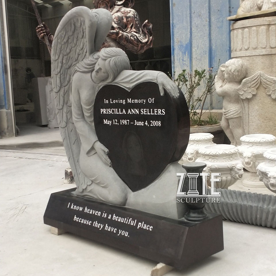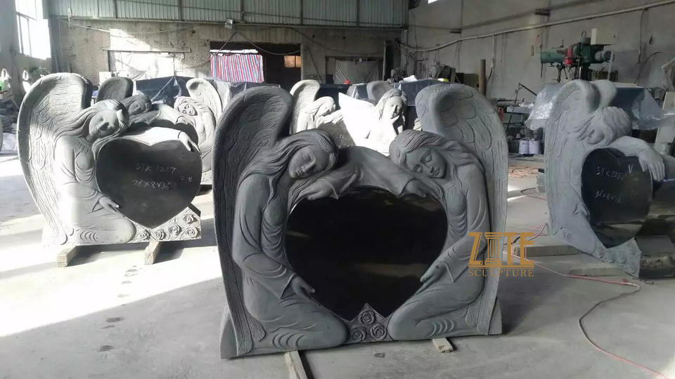 Pierre tombale monuments marbre religieux double ange coeur pierre tombale