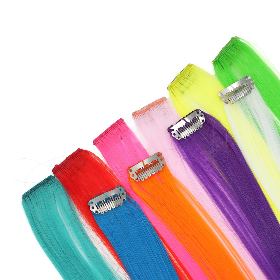 Extension de cheveux synthétiques colorées à clips