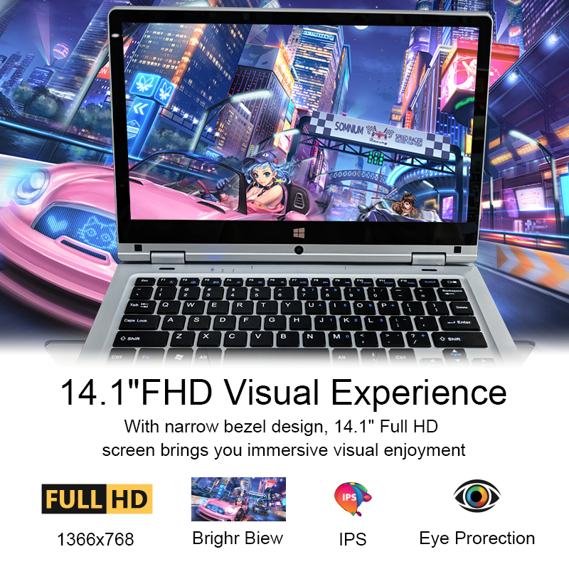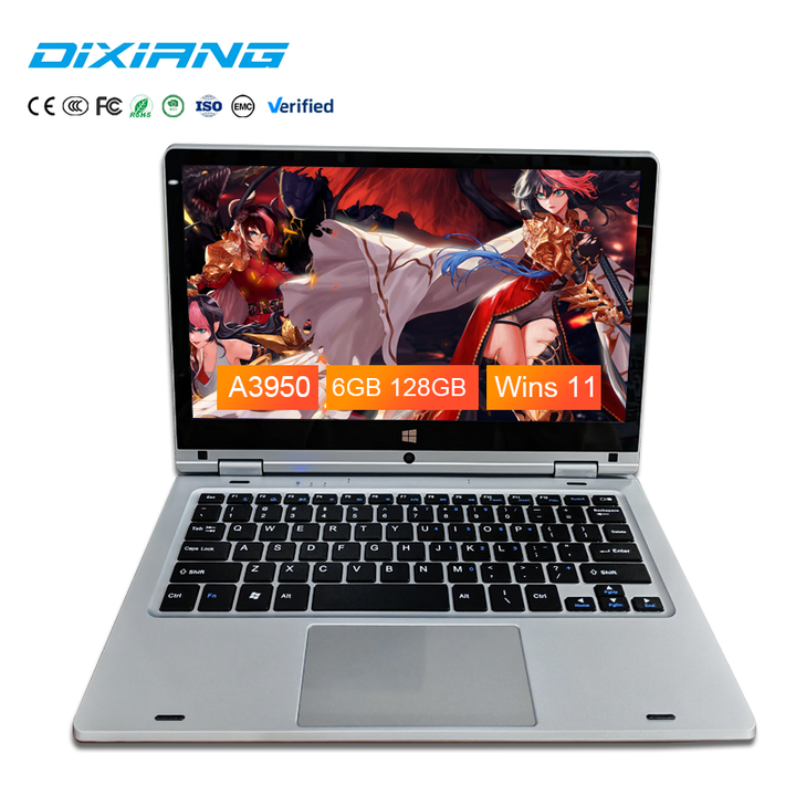 Ordinateur Portable Tactile Économique 11.6 Pouces Intel A3950 2-en-1 Yoga 6Go RAM SSD 256Go/512Go/1000Go, Mini PC Portable