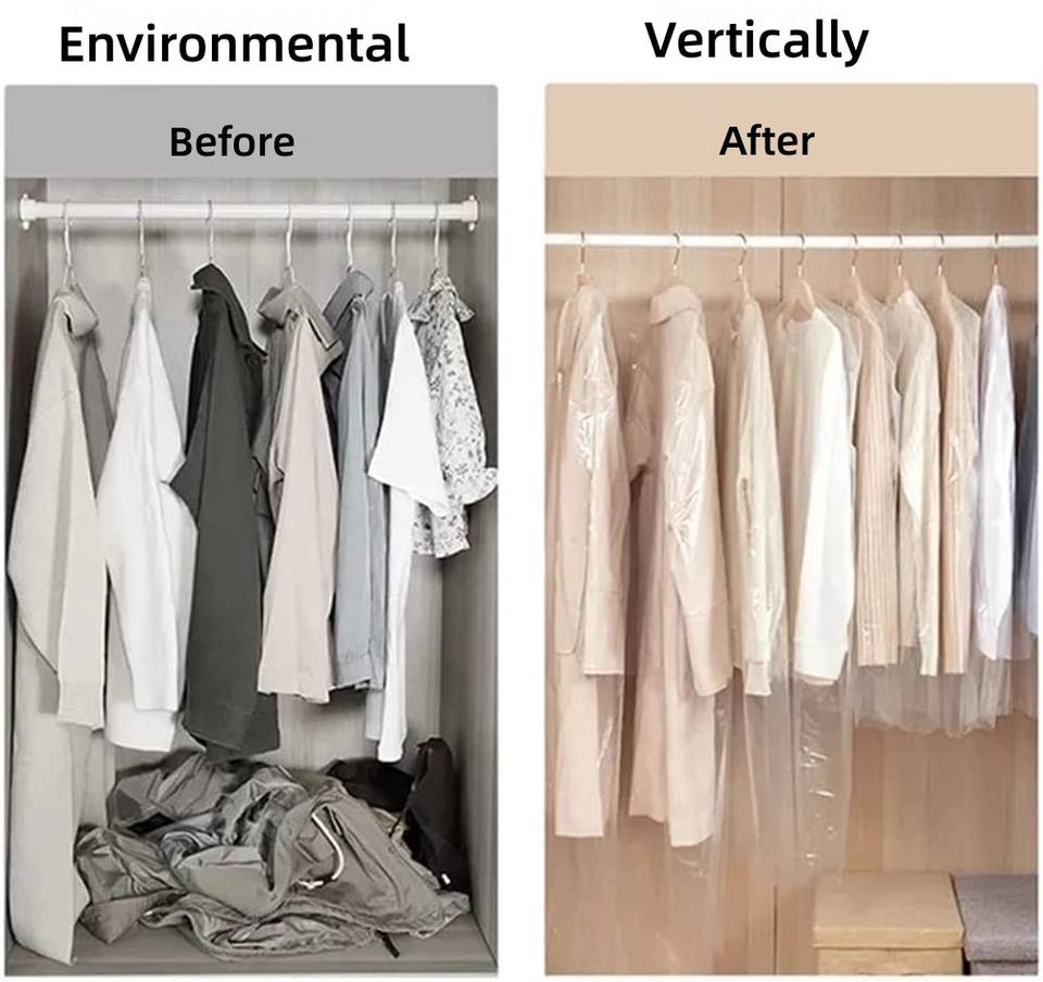 Sac de rangement de vêtement suspendu en plastique transparent bon marché PP PE Housse anti-poussière étanche pour l'emballage des vêtements