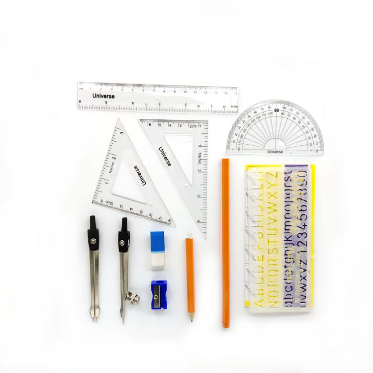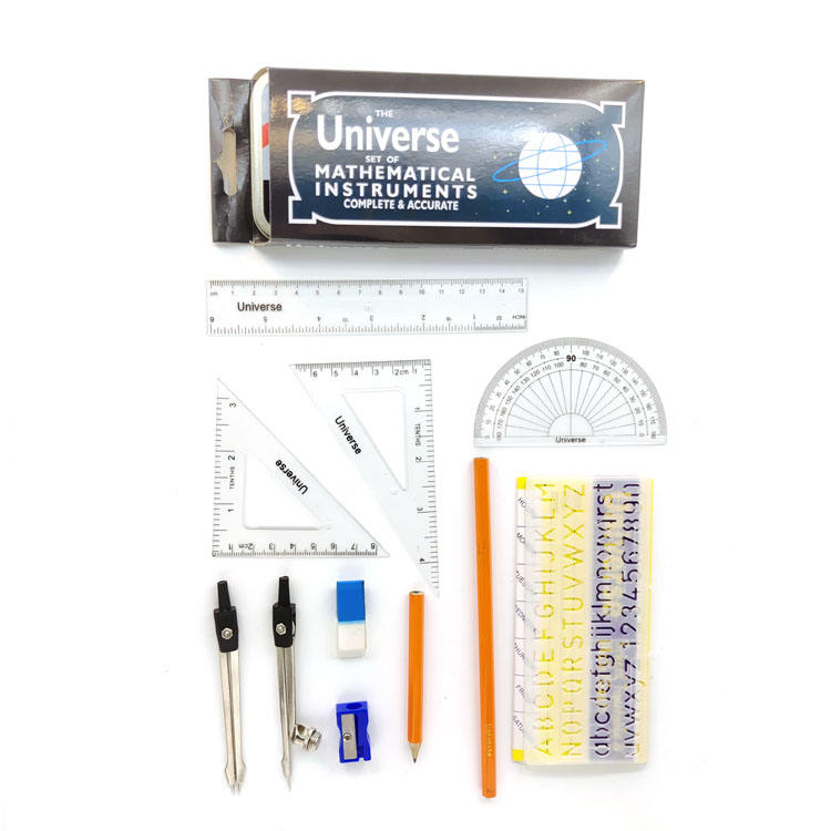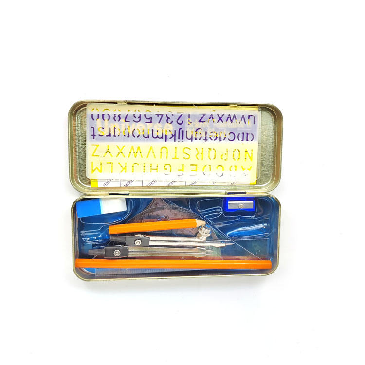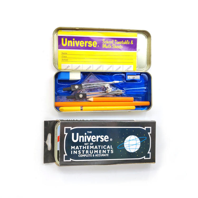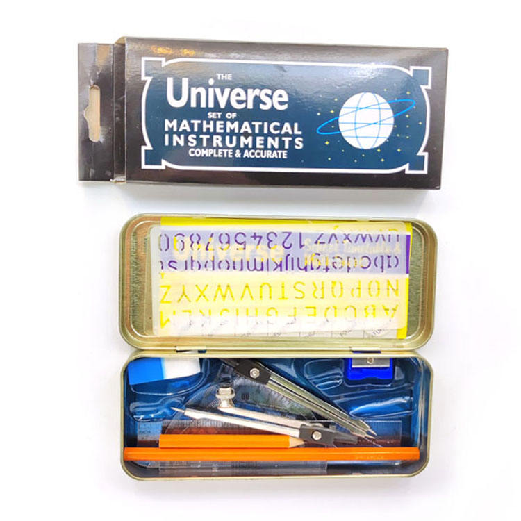 Ensemble mathématique d'univers bon marché 13pcs boussole diviseur mathématique ensemble dans une boîte en métal