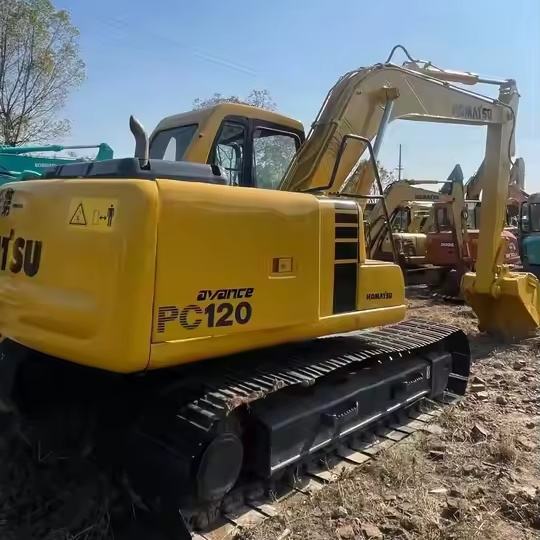 Excavatrice Komatsu PC120 d'occasion à bas prix, godet de 0,5 m³, poids opérationnel de 12 tonnes, faible nombre d'heures de travail, avec moteur et pompe, à vendre