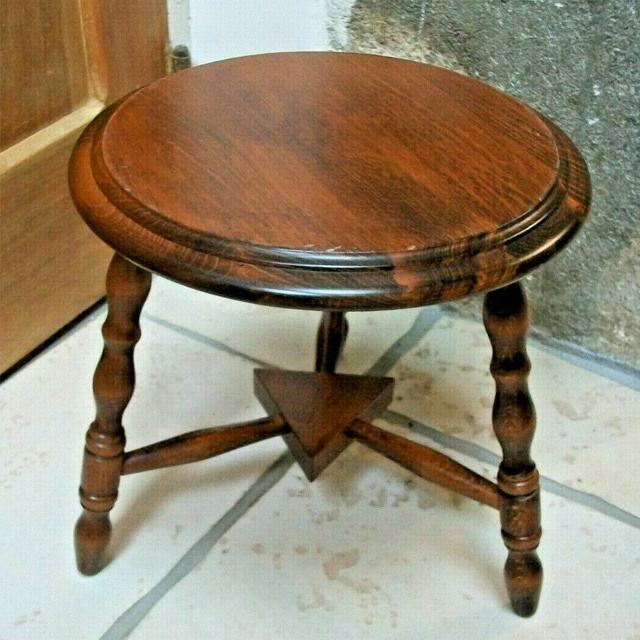 Tabouret bas en bois vintage pas cher avec 3 pieds, style bohème chic