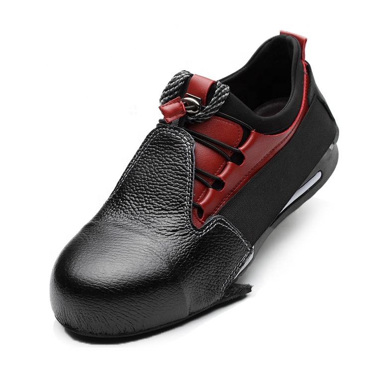 Type de texte:Chaussures de sécurité anti-écrasement à lacets en cuir noir avec embout en acier.