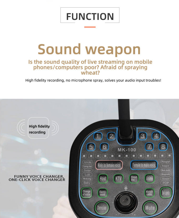 Dispositif de modification de voix pas cher, ordinateur portable, jeu mobile, diffusion en direct, best-seller MK100, mélangeur numérique de puissance extérieur
