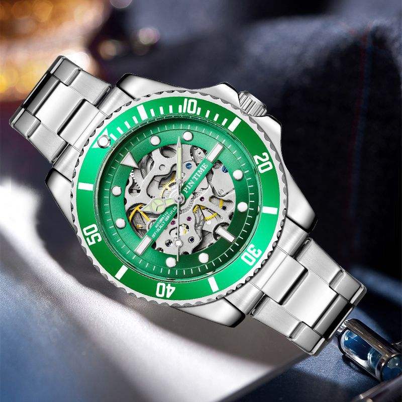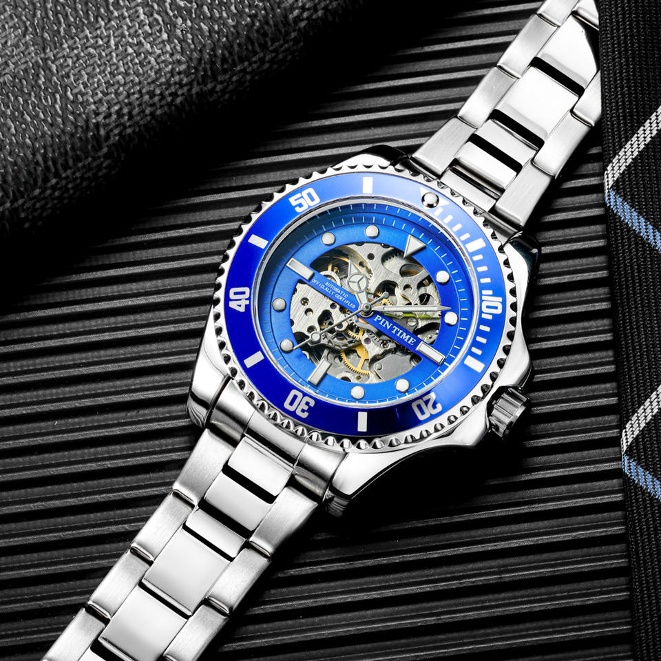 Montre-bracelet automatique de luxe pour hommes, bracelet en acier inoxydable étanche bon marché, montres mécaniques creuses classiques d'affaires personnalisées