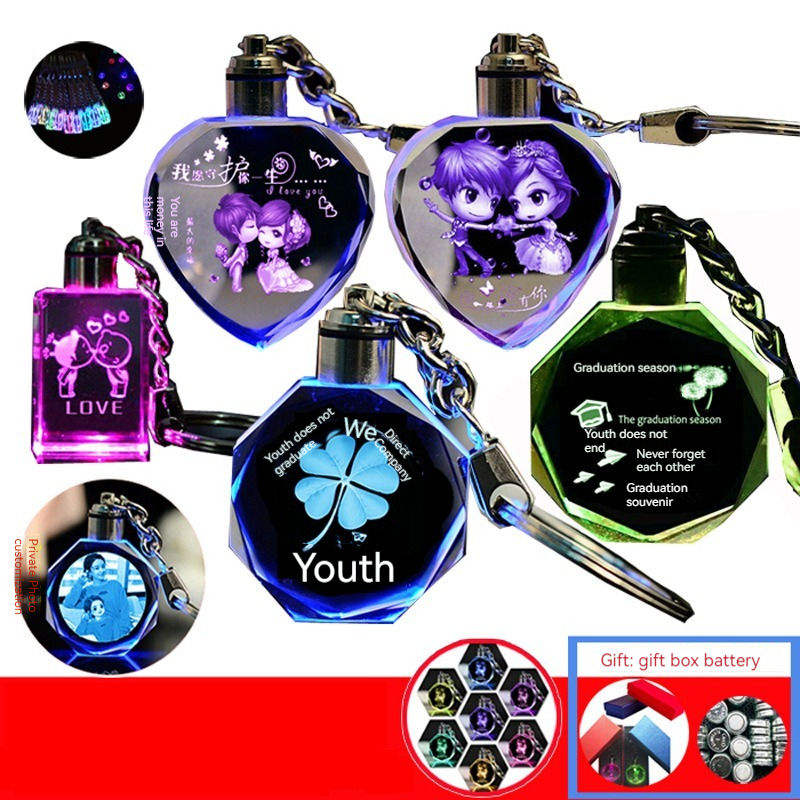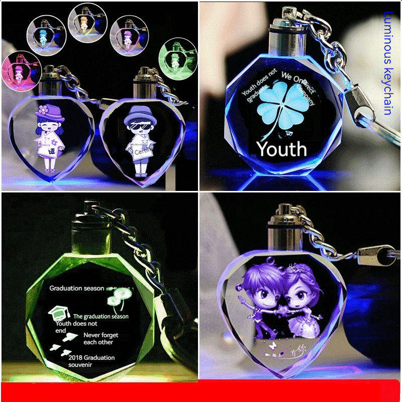 Pas cher en gros cristal porte-clés personnalisé 3d laser gravure cristal artisanat porte-clés Led pour Noël porte-clés cadeaux