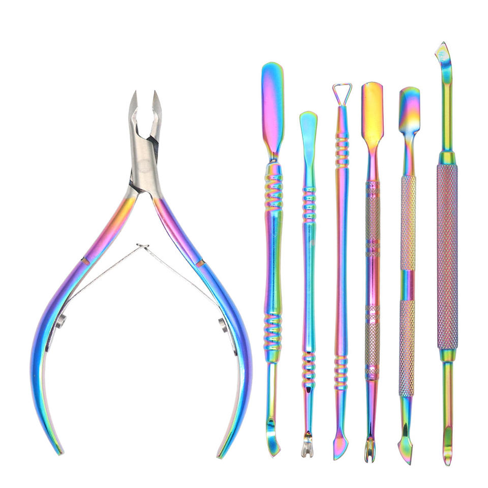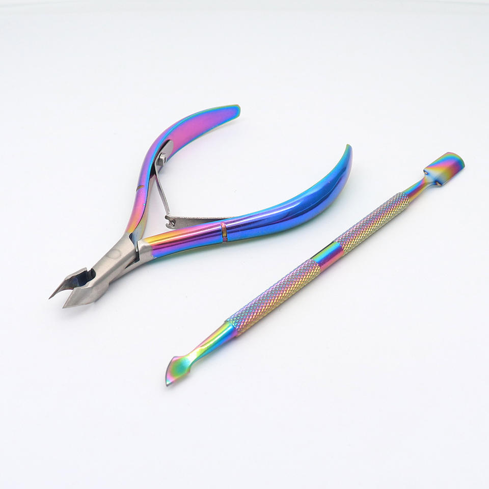 Pas cher En Gros Double Face À Tête Ronde Peau Morte Ciseaux Nail Suit Nail Steel Push Dead Skin Push Manucure Outil