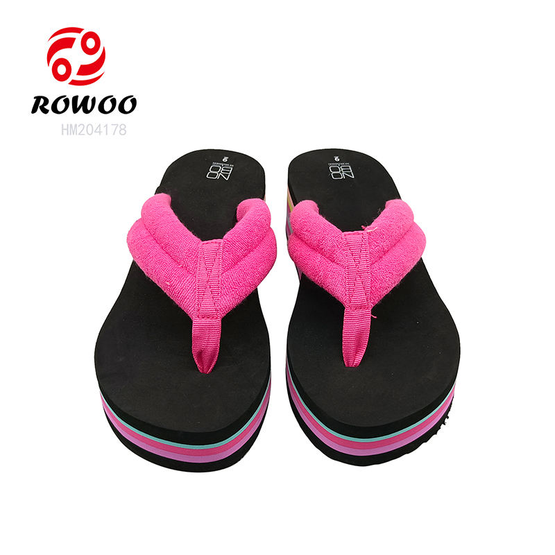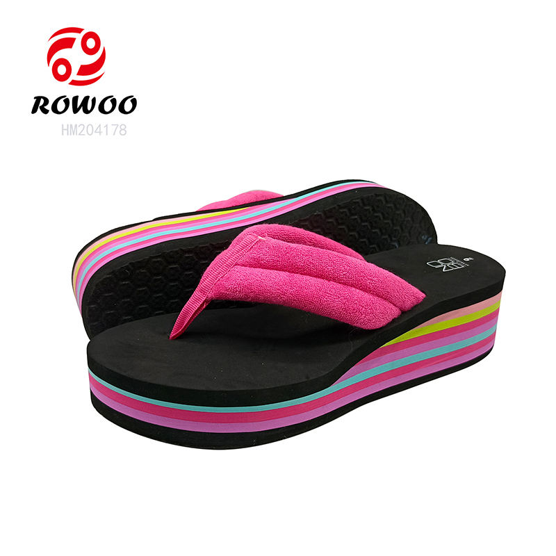 Tongs bon marché pour femmes personnalisées en usine sandales à talons hauts colorées à semelles compensées pour femmes Eva Beach