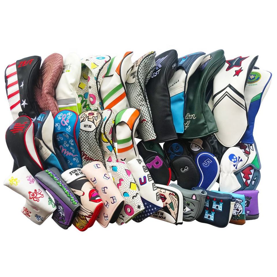 Housse de tête de club de golf en cuir PU personnalisée avec motif et logo, pour driver, fairway, hybride, bois 1, 3, 5 ou fer, vente en gros à bas prix et de haute qualité