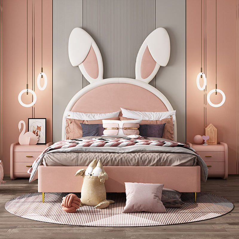 Lit de princesse moderne et créatif bon marché en gros lit pour fille de style nordique lit à oreilles de lapin rose cadre de lit pour enfant mignon lit Queen