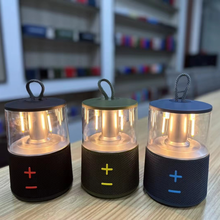 Bon marché Vente en gros Haut-parleurs bluetooth les plus chers Tissu rond 5 Haut-parleur personnalisé avec lumière pour cadeau