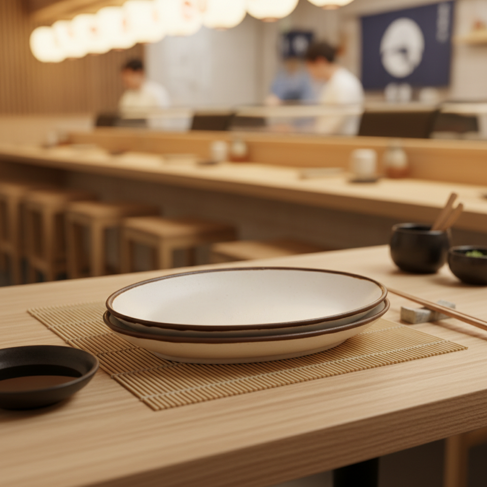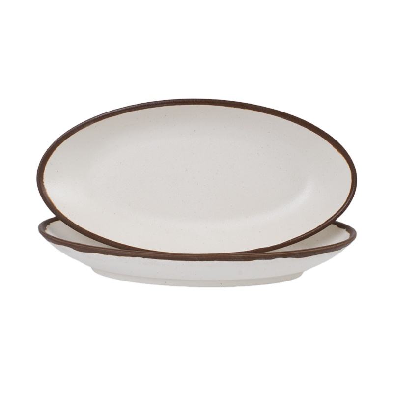 Assiettes ovales en mélamine de 10,6 pouces à grand rebord pour restaurant, prix de gros abordable