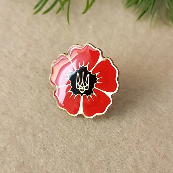 Épingles à revers en émail personnalisées avec trident ukrainien et motif de pavot rouge, en acier inoxydable 316L, pour hommes et femmes, vente en gros à prix réduit