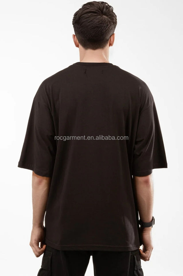 Vente en gros à prix réduit Chemise à col rond de couleur unie T-shirt surdimensionné avec logo personnalisé T-shirt Boxy noir pour hommes