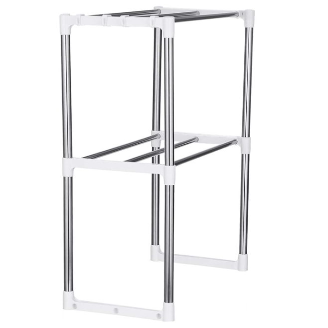 Cadre télescopique bleu bon marché et multifonction, étagère de rangement de cuisine, niveau 2, en acier inoxydable, four à micro-ondes, cuisine et table