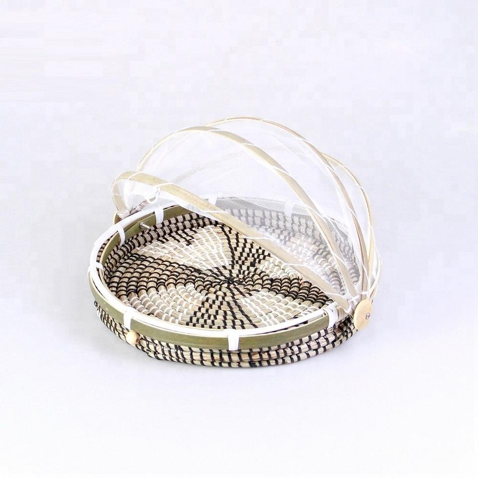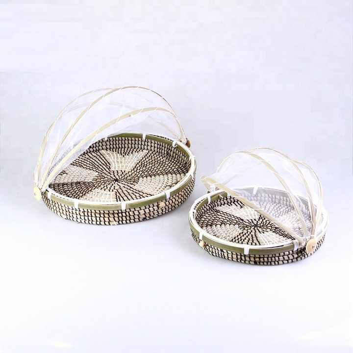 Cheap price natural foods tray with net seagrass food tent custom designs sea grass mesh cloche
