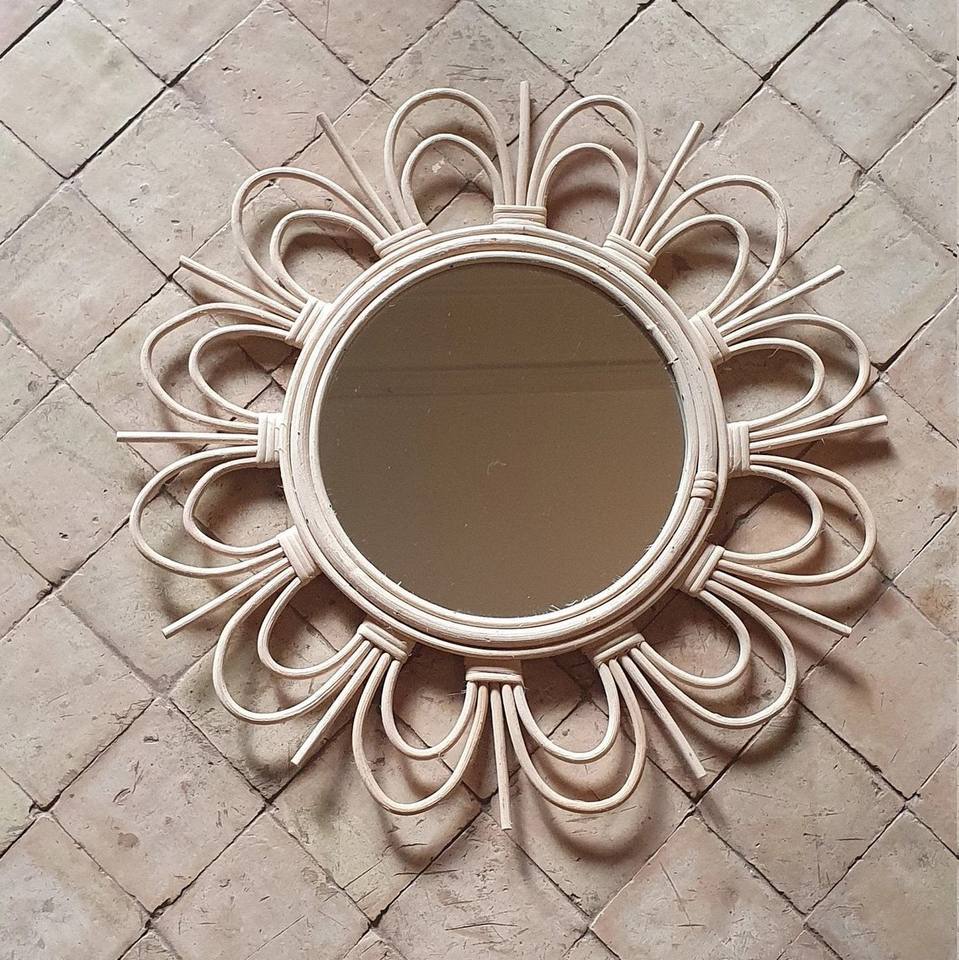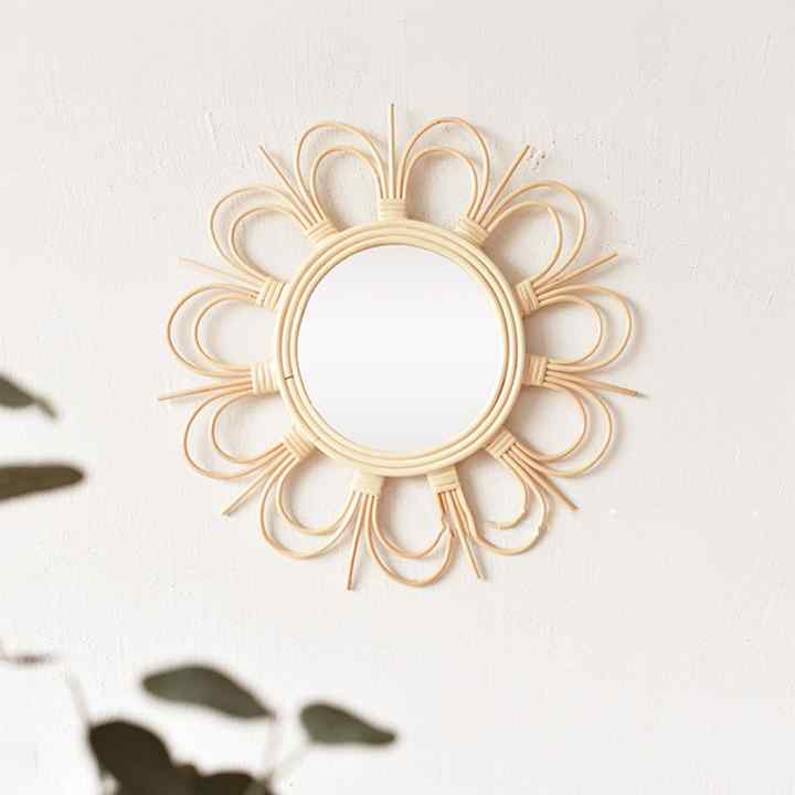 Miroirs en rotin, prix bon marché, décoration murale, style moderne, miroir en verre, logo gravé, toutes tailles, durable, provenant du Vietnam