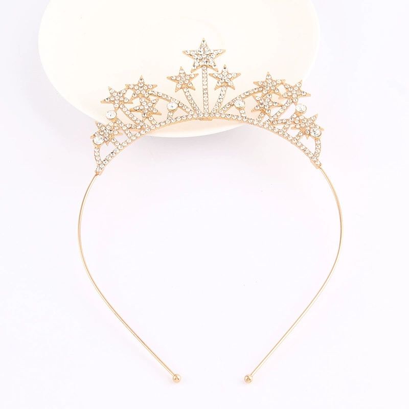 Bon marché jolis bandeaux pour enfants avec strass mixte argent or rose bling étoile cristal anniversaire filles bandeaux intelligents avec lettres personnalisées