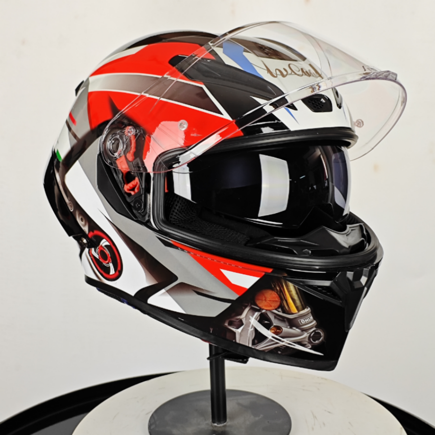 Moins cher Casque à double lentille Moto Homme et Femme Quatre Saisons Sécurité Universelle Certifié DOT Casque Intégral Motocross