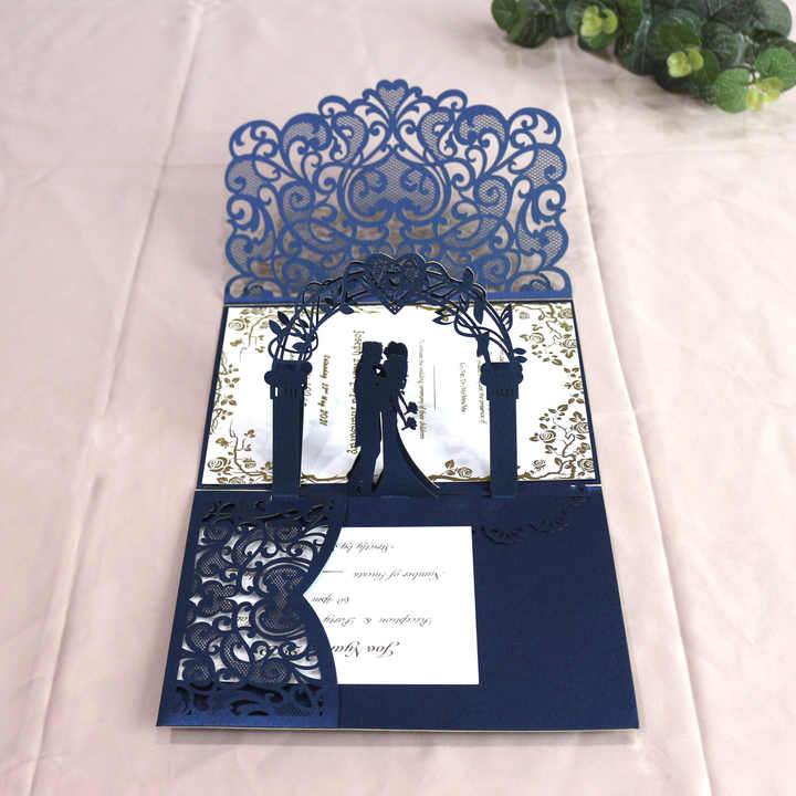 Product Name:Cheaper Elegant Navy Wedding Invitations 3d laser laser cut card