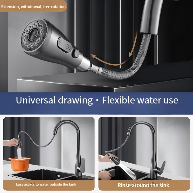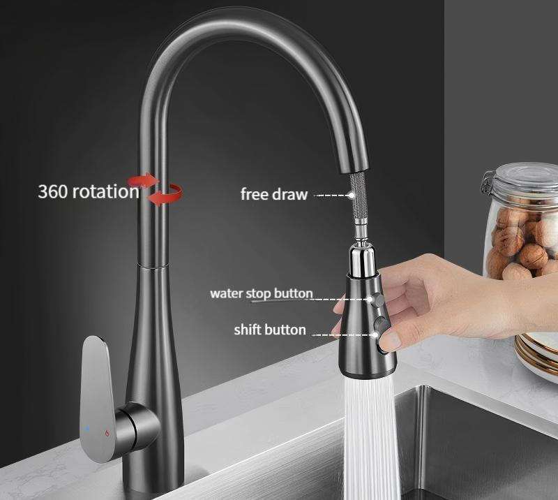 Dispositif:Installation facile, 360 degrés tournent, Robinets thermostatiques, Tirer vers le bas les robinets de cuisine, Flexible, Sens de robinet, Douchette amovible