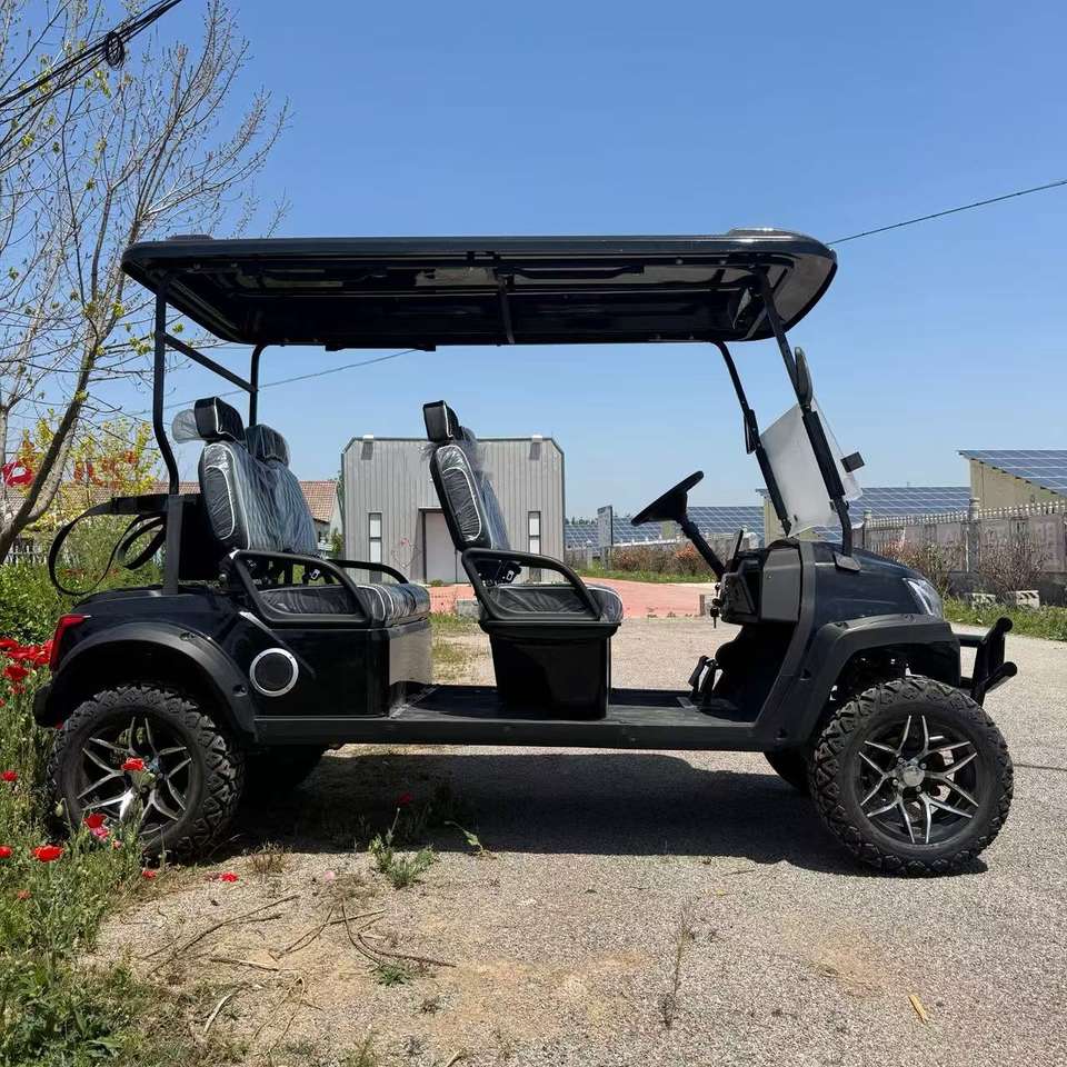 Chariot de golf électrique le moins cher 4 places 72V au lithium chariots de golf électriques personnalisés avec pneus tout-terrain supportant la charge sans fil