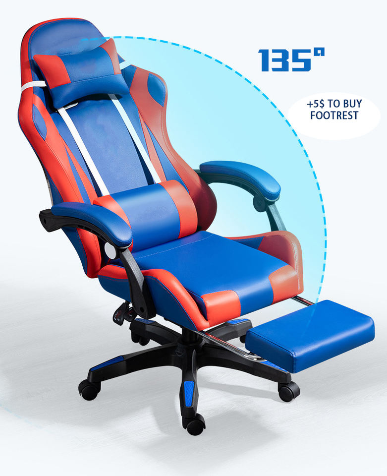 Chaise de bureau gaming racing gaming la moins chère avec repose-pieds et bande lumineuse RGB de massage et fonction Bluetooth en option