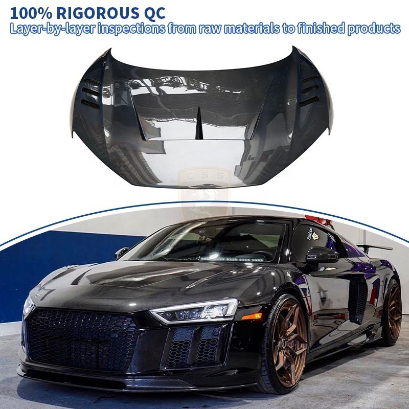 Capot en Fiber de carbone véritable pour Audi R8, modèle 1016, pas cher, 3K