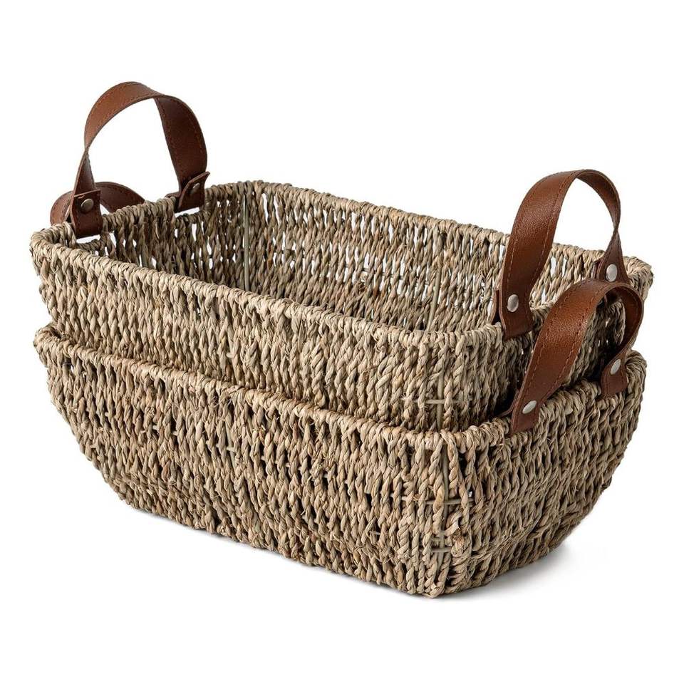Petit panier en osier le moins cher-Lot de 2 paniers en jonc de mer tissés à la main pour salle de bain, pour papier toilette, essuie-mains et articles de toilette.