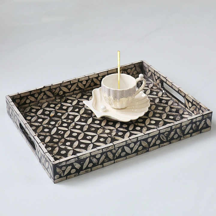 Cheapest price deluxe mother of pearl tray best selling mosaic bone inlay trays from factory