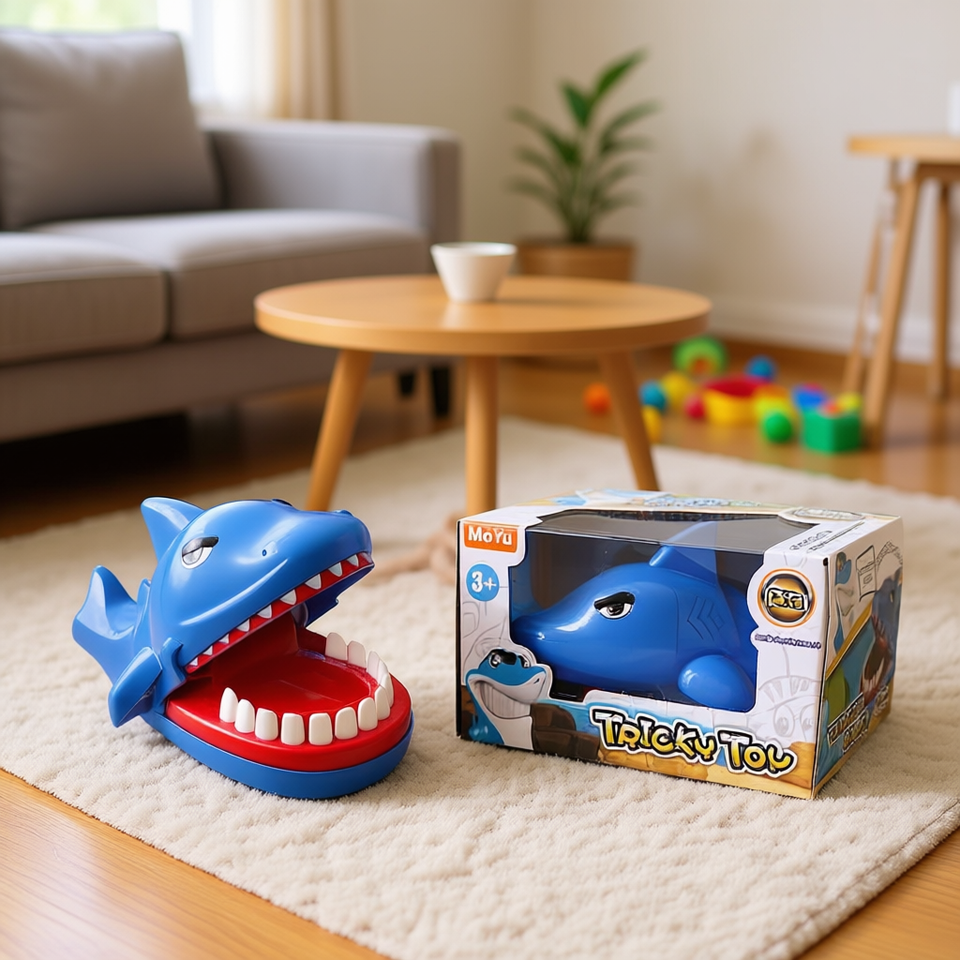 Jeu de morsure de requin Tricky Toy pour enfants de 3 ans et plus, en plastique bleu, sur le thème des animaux, pour des soirées amusantes