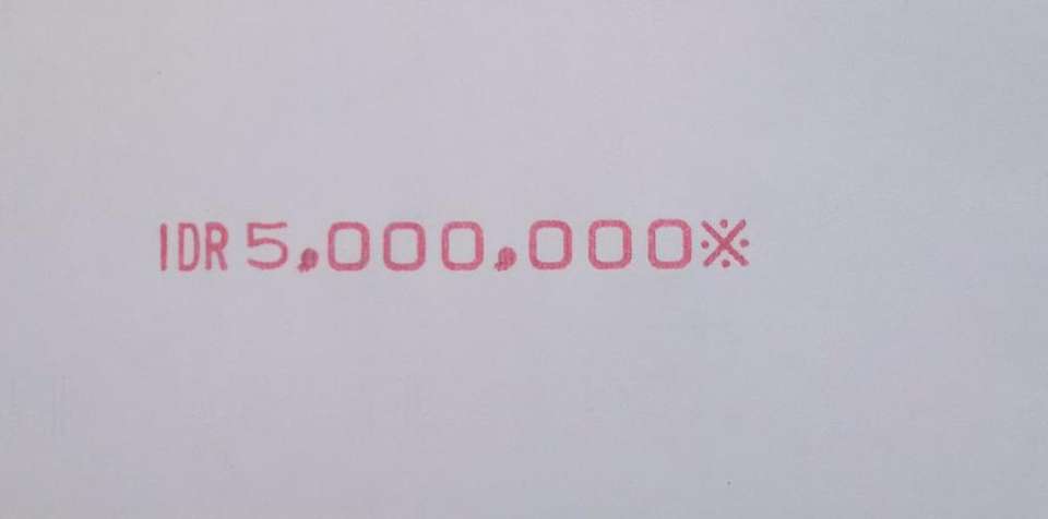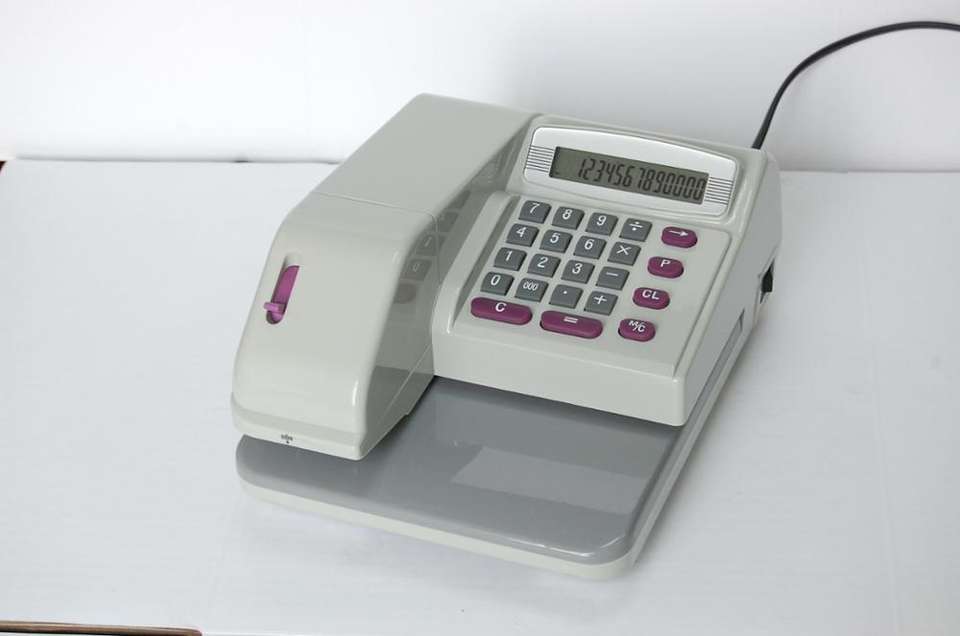 Imprimante de chèques avec 16 devises, codes de symboles : CAD/CFA/CA/CHF/CTS/CHA/USD/EUR/INR/LBP/QAR