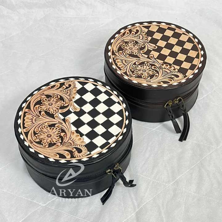 Product Name:Hand Tooled Checkered Leather Large Jewelry Case