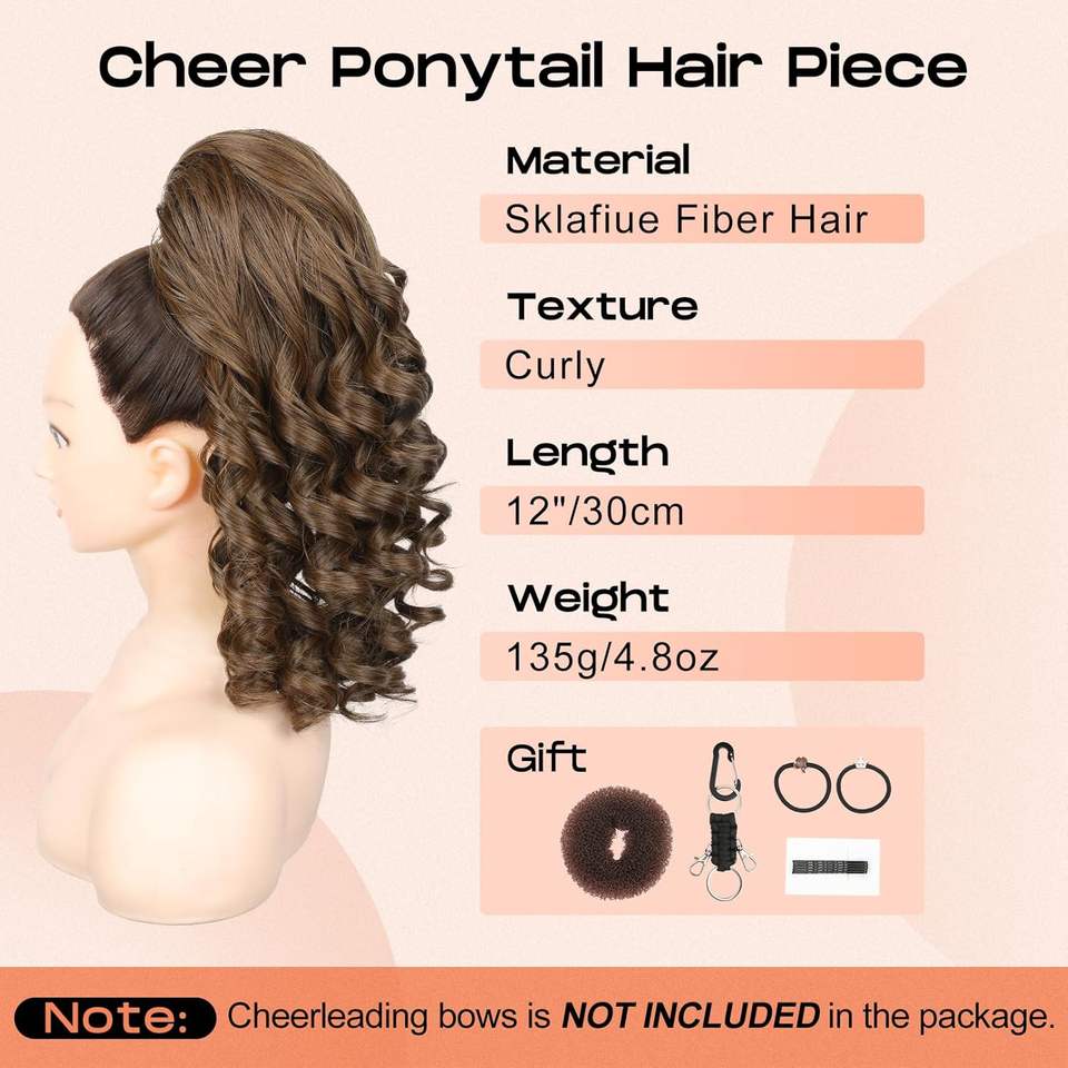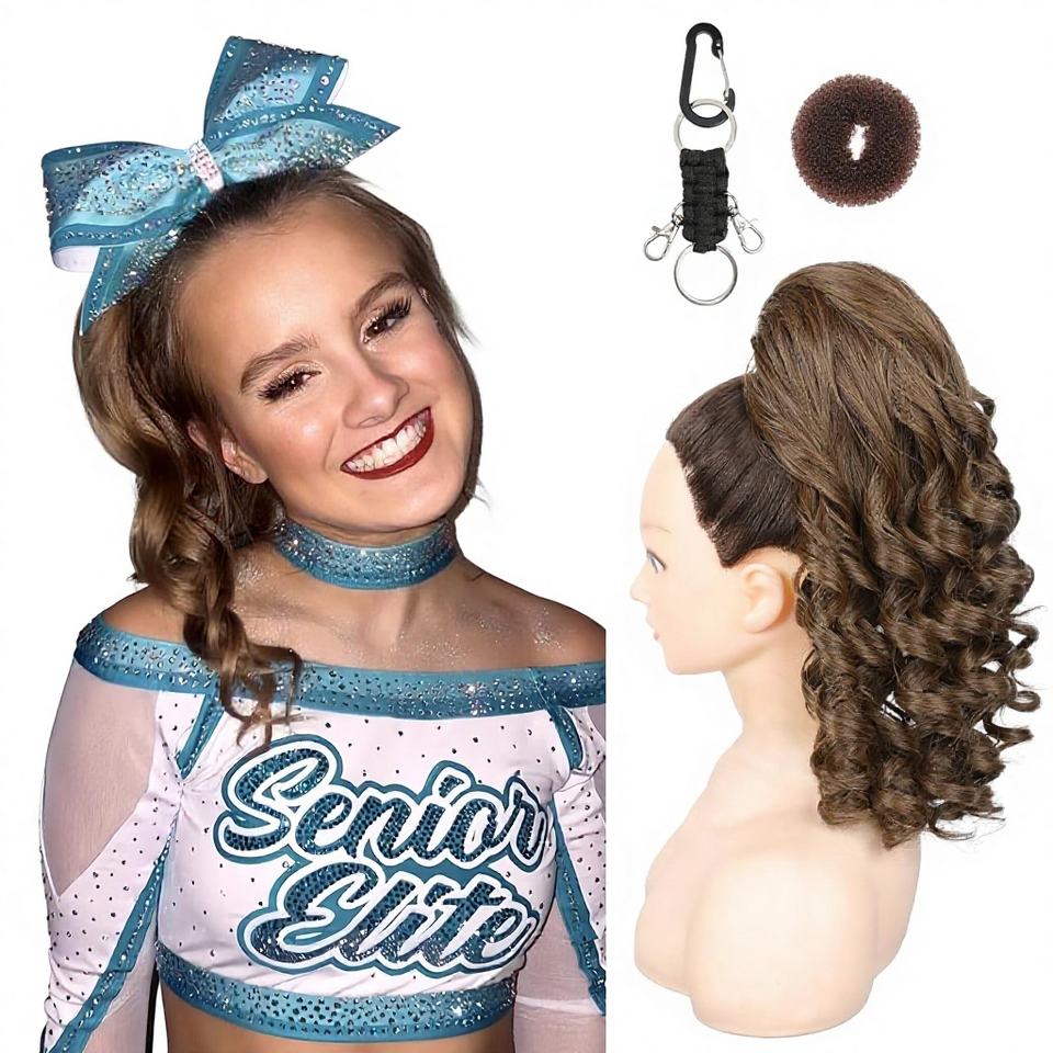 Extension de cheveux en queue de cheval Cheer, 14 pouces, bouclée, résistante à la chaleur, fibre inflammable, extension de queue de cheval pour la danse de compétition, couleur chaud moka foncé