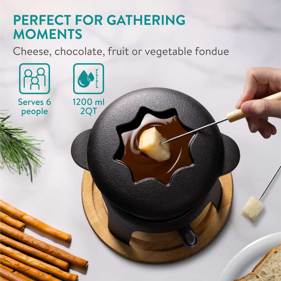 Service à fondue au fromage pour 6 personnes-Ensembles à fondue en fonte 2qt avec 6 fourchettes à code couleur pour fromage, chocolat ou viande