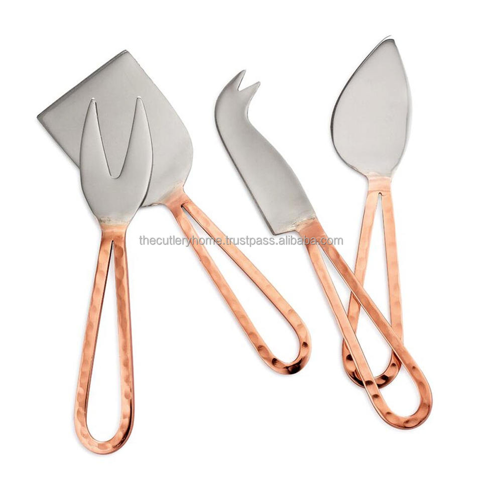 Service de table fromage à poignée martelée, fait à la main, en acier inoxydable, Style occidental, Look chic, Design de goutte creuse