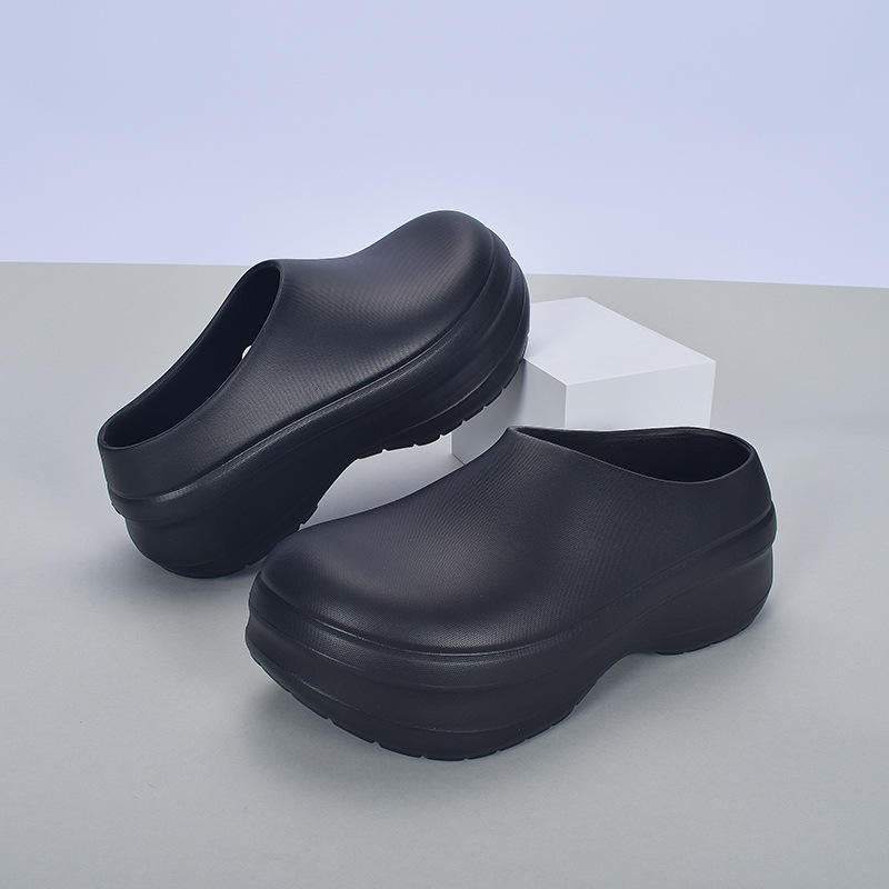 Sabots de Chef pour Hommes à Semelle Épaisse, Bout Fermé, Noirs, Imperméables, Antidérapants, Chaussures Décontractées, Talon de 2-3 cm, Style Simple pour Couple