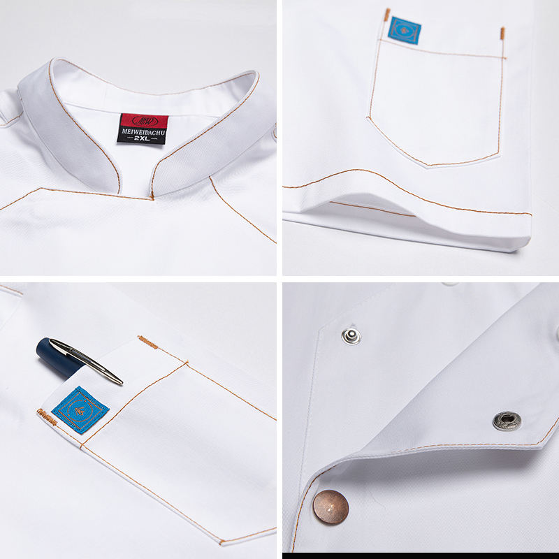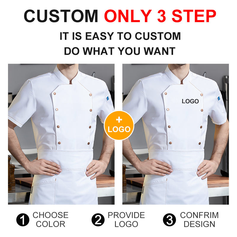 Chef Manteau Noir et Or Restaurant Serveur Uniforme Chemise À Manches Courtes Cuisine Manteau Maître Chef Uniforme