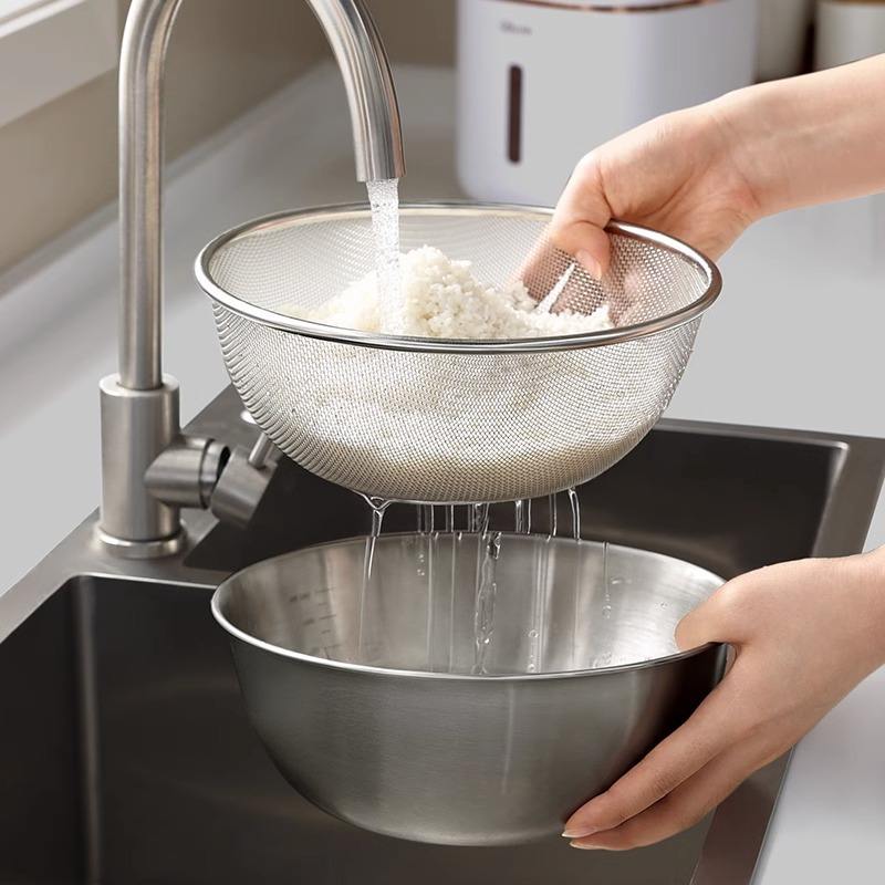 Passoire à riz en acier inoxydable Chef Jun, double couche, pour le nettoyage des légumes et du riz