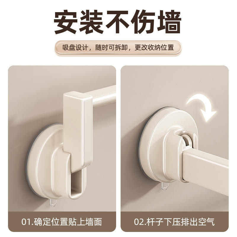Porte-serviettes mural à ventouse Chef Jun, 2 barres, blanc laiteux, étagère de rangement pour salle de bain, gain de place