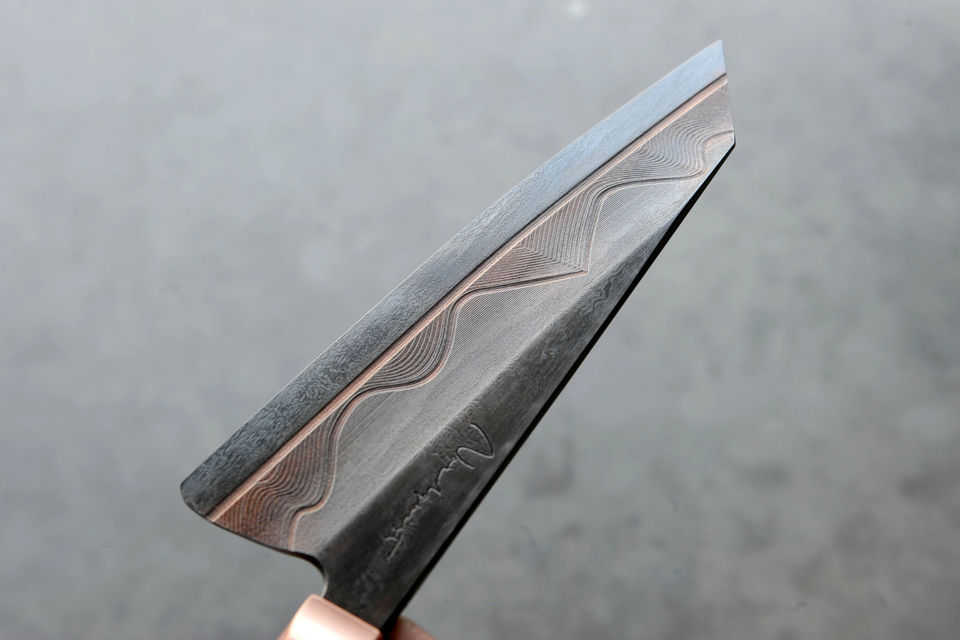 Couteau de Chef Damas et Cuivre, Couteau Utilitaire de Cuisine en Acier Carbone, Cadeaux d'Anniversaire et de Pâques avec Étui en Cuir, Couteaux de Cuisine