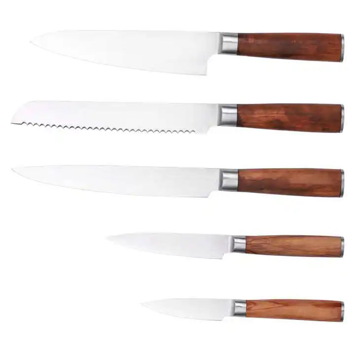 Ensemble de couteaux de chef, ensemble de 5 couteaux de cuisine avec lames ultra-affûtées en acier inoxydable 3CR13 amélioré, ensemble de couteaux avec manche en bois d'olivier