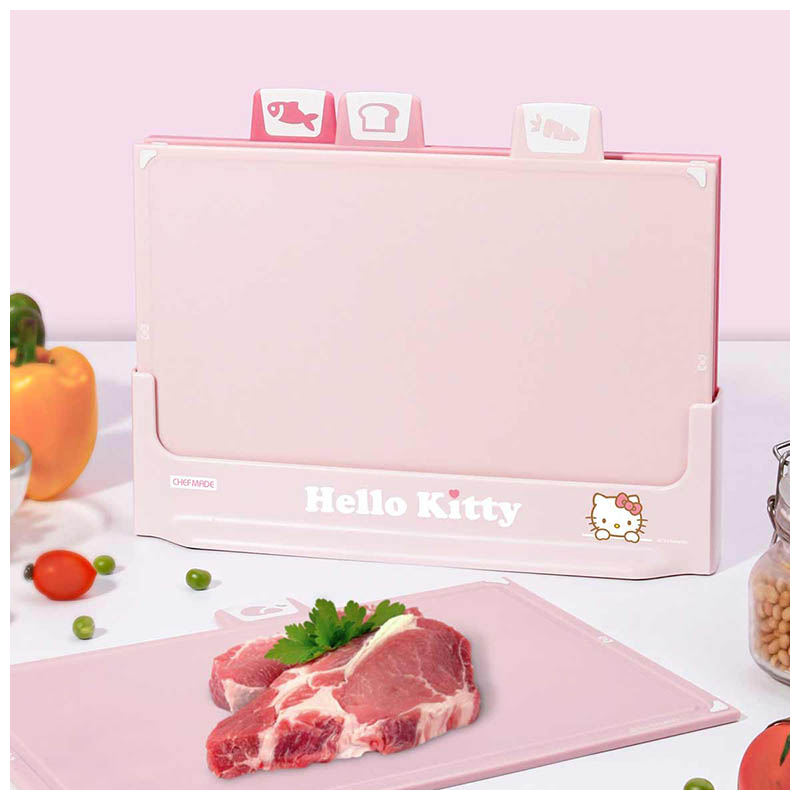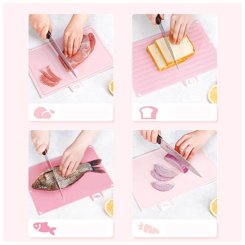 Ensemble de 4 planches à découper rectangulaires en plastique PP Chefmade KT7131 avec codage des aliments crus et cuits en quatre couleurs, écologiques